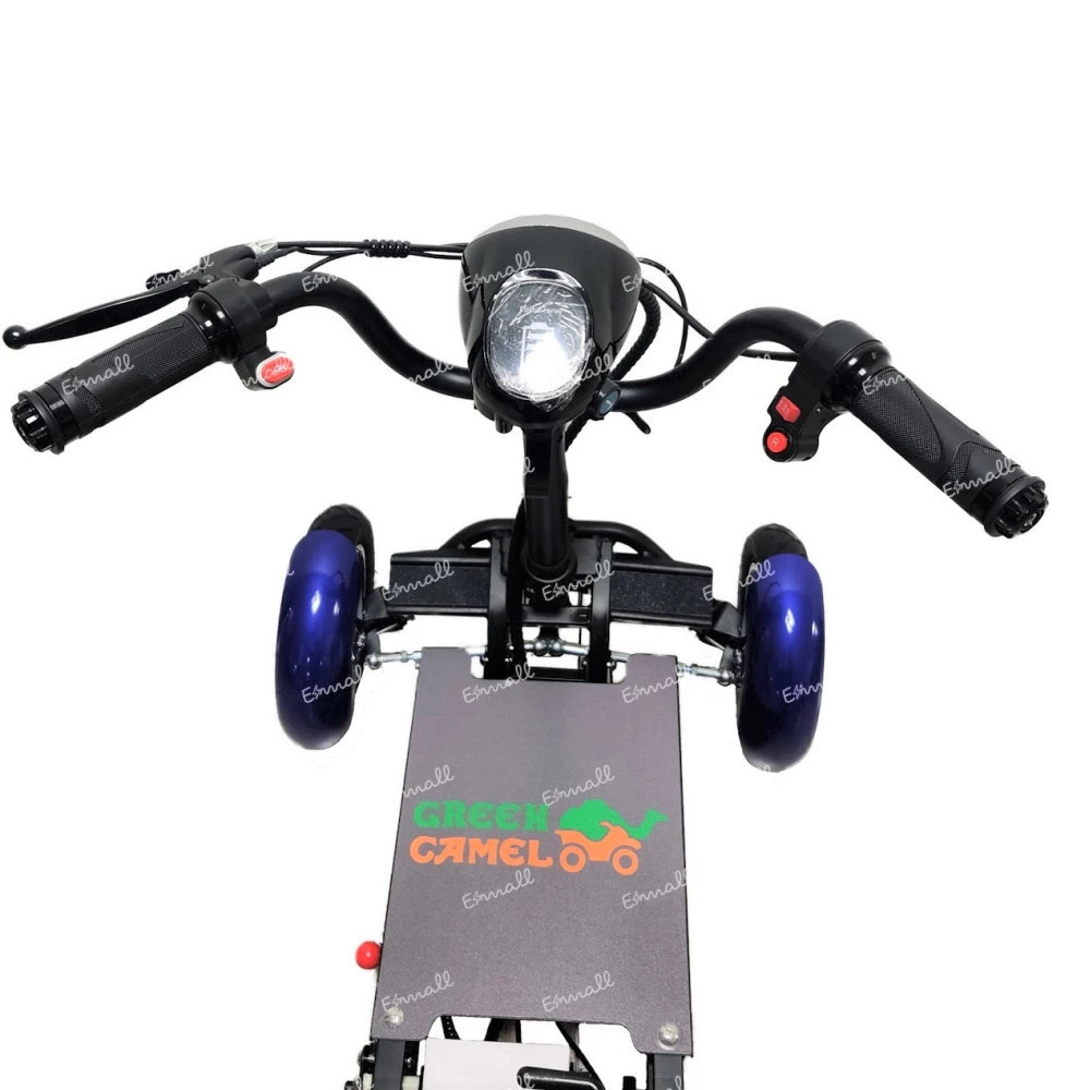 Электро-трицикл GreenCamel Кольт 501 компактный и удобный, при желании можно сложить и катить. Можно убрать в небольшую сумку. При сборке посадочное место убирается.