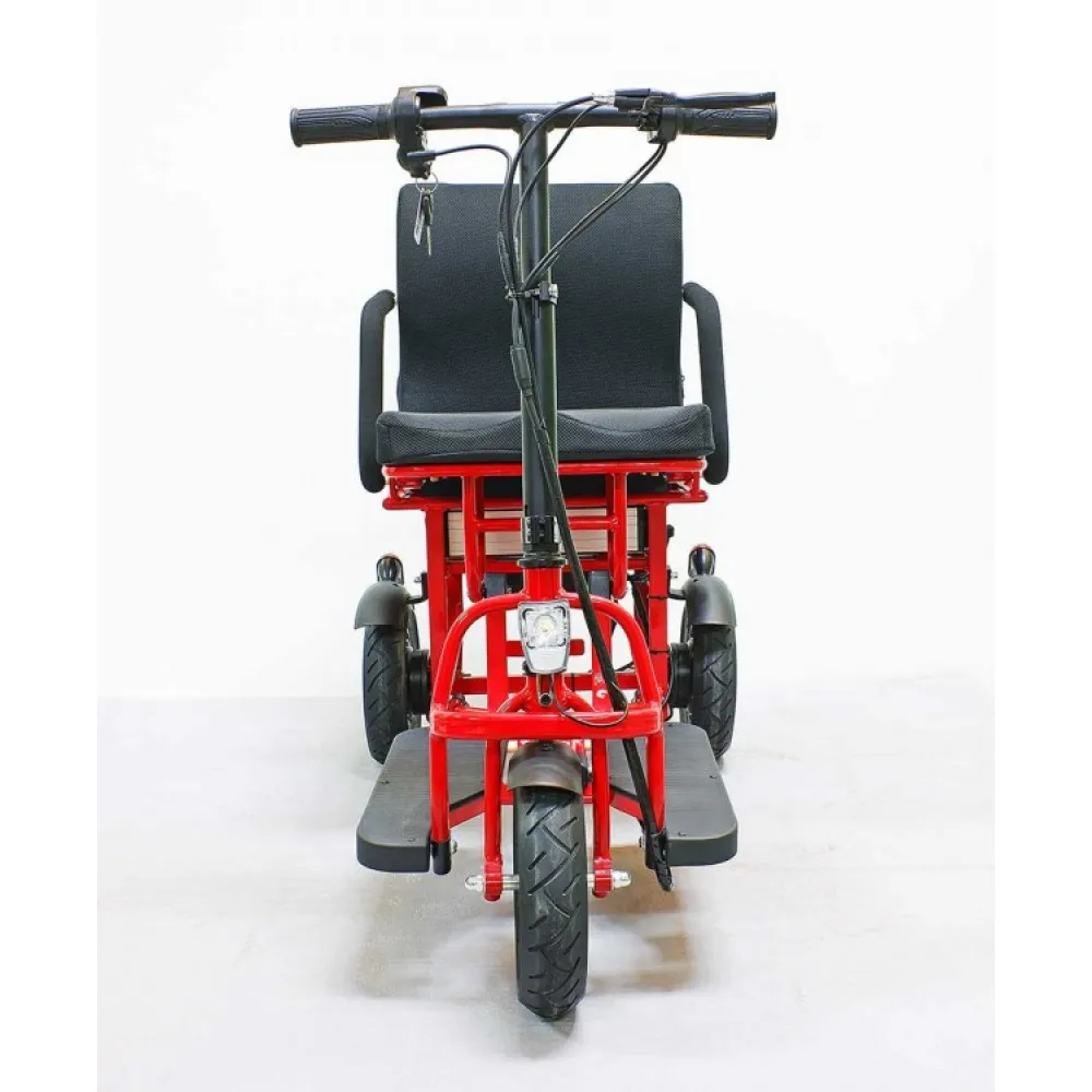 Модель предназначена для катания по городской местности, парковой зоне и тротуарным дорожкам. Многие покупают электротрицикл для эксплуатации в крупных ТЦ, парках отдыха, на выставках и других территориях с массовым пребыванием людей. Удобное мягкое сиденье рассчитано на подростков и взрослую категорию пользователей. Не вызывает дискомфорта, повторяет анатомические части тела. Широкая платформа для ног не скользит, размещает 2 стопы одновременно. Высота рулевой части корректируется в соответствии с ростовыми параметрами пользователя. При мощности 700 Вт электро трицикл способен развивать скорость 25 км/час. В сочетании с АКБ емкостью 10,4Ah техника способна преодолевать большие расстояния. Особенности конструкции позволяют разворачиваться и двигаться в помещении или на территории с радиусом в полтора метра. При изучении характеристик важно понимать, электротрицикл не инвалидное средство, это техника для повседневного передвижения и катания.