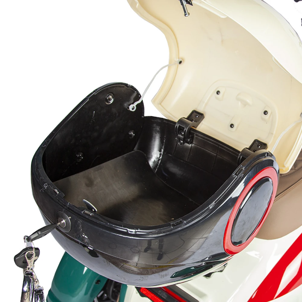 Скорость достигает до 25 км/ч, а заряд позволяет проехать тридцадь километров на одном заряде аккумулятора. Он легко перевозит грузы до 120 кг, что делает его превосходным вариантом для коммерческого использования.