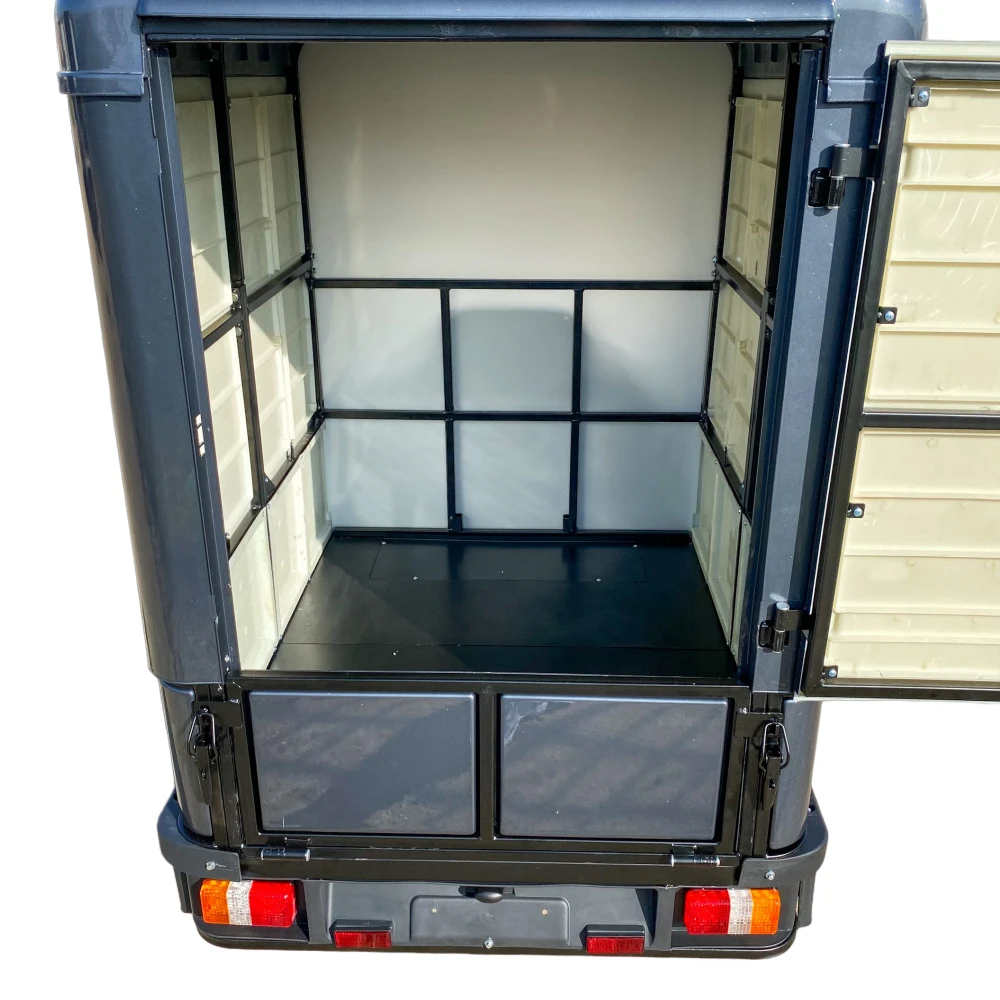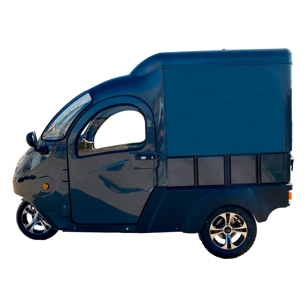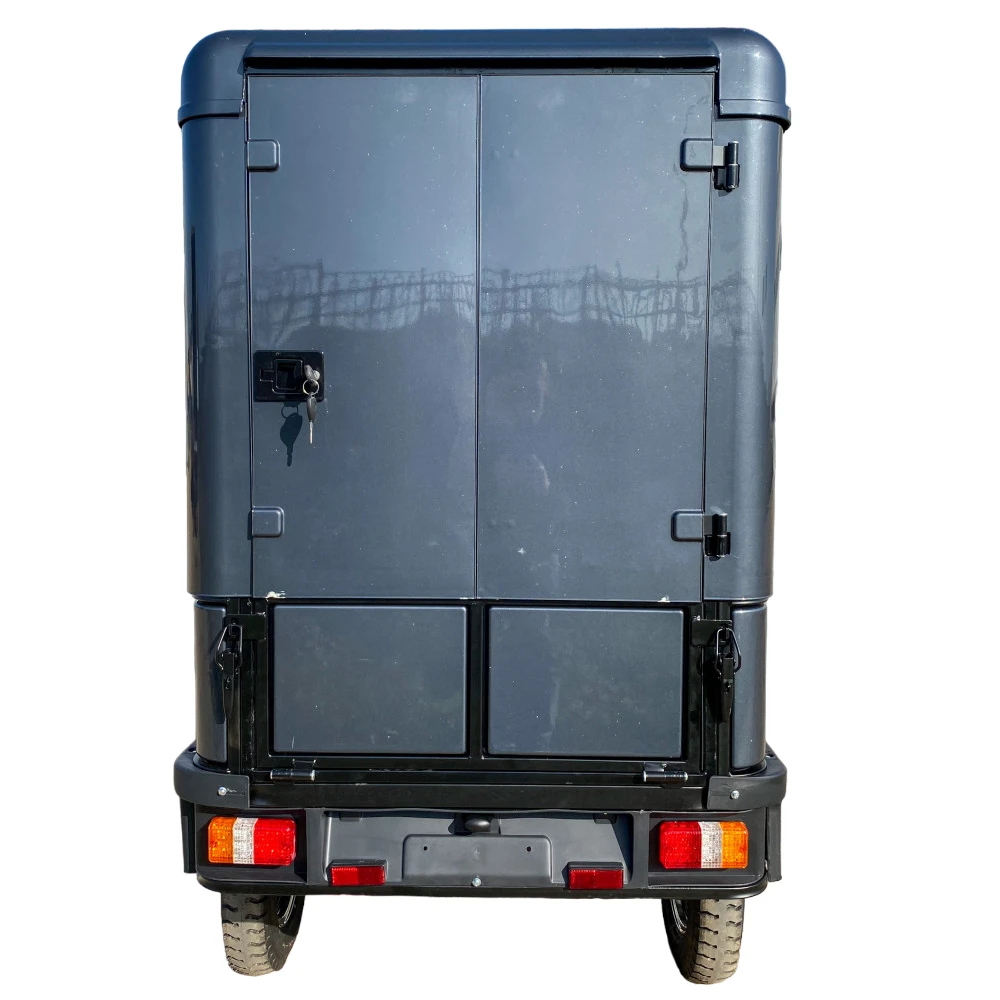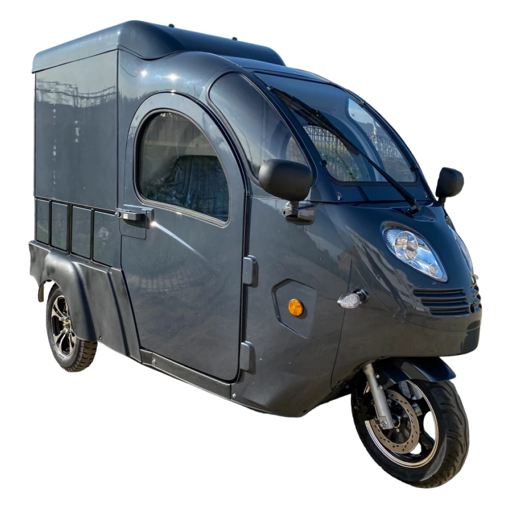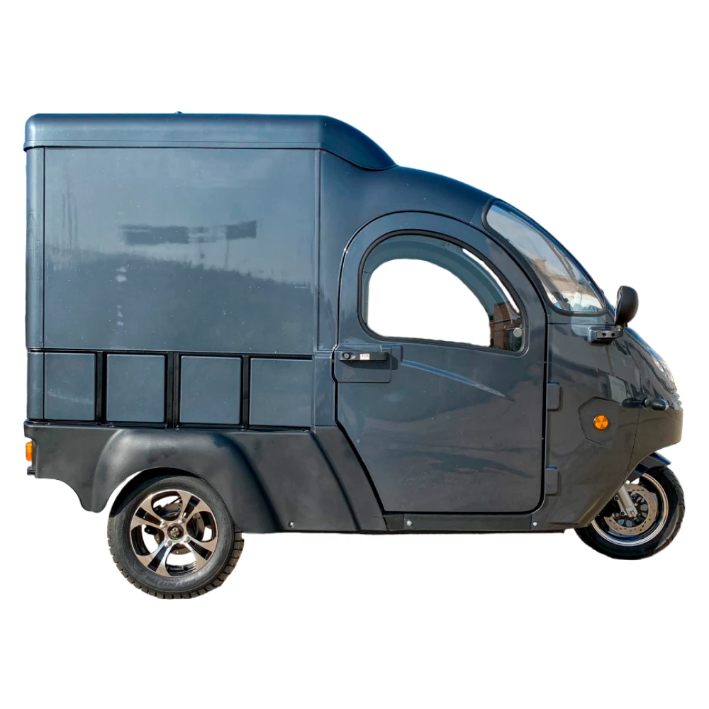 Кабина и BOX обеспечивают комфорт и защиту во время поездок. Вы сможете защититься от погодных условий и сохранить груз в надежности. Кроме того, понижающая передача позволяет эффективно управлять электротрициклом даже при полной нагрузке.