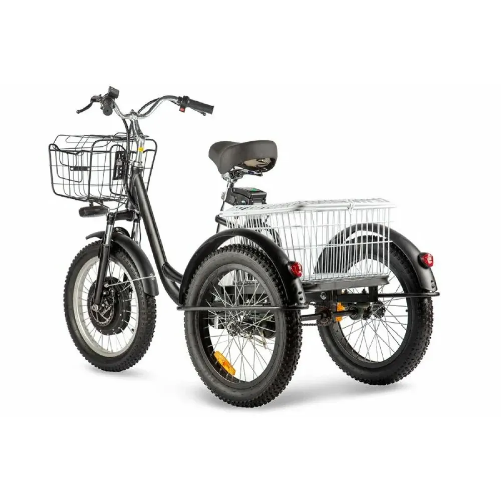 Покупка техники обещает эмоциональное удовольствие и помощь при транспортировки тяжелых предметов. При максимальной грузоподъемности 120 кг электровелосипед со скоростью 30 км/час без труда преодолевает 70 км пути. Указанный показатель максимальный среди трициклов.