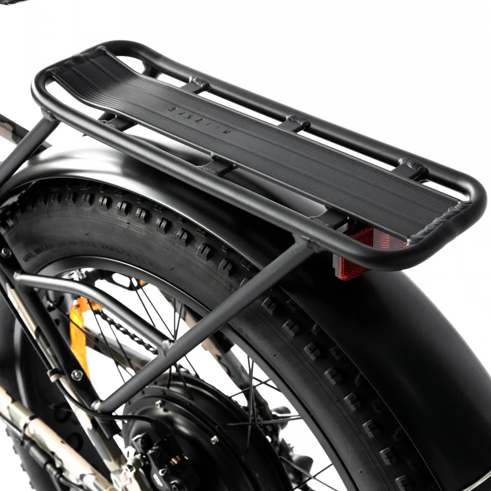 Техника имеет современное широкое сидение для комфортных длительных поездок. Возможность езды в смешанном режиме дает возможность свободно передвигаться в горной местности и по неровным дорогам. Аккумулятор заряжается быстро за 7-8 часов, существенно экономит время современного райдера. Рама имеет складную конструкцию, изготовлена из облегченного алюминия, при необходимости быстро трансформируется.