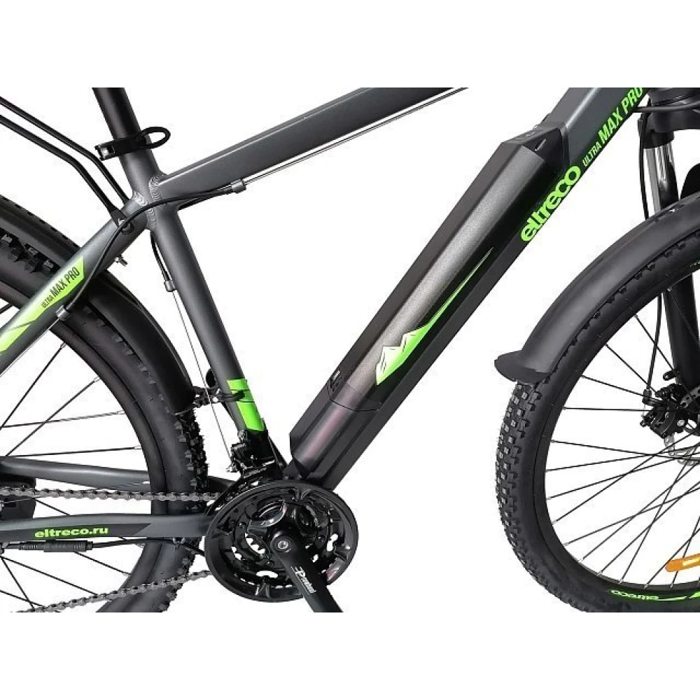 Eltreco Ultra Trend UP! – усовершенствованная модель велогибрида Ultra Trend.  Лёгкая и прочная алюминиевая рама, к которой прикрепляется съёмная батарея, 27,5-дюймовые манёвренные колёса и практичная 7-скоростная трансмиссия делают управление велосипедом максимально простым и комфортным.  За остановку велогибрида Ultra Trend UP! Отвечают два дисковых механических тормоза. Для нетрудного преодоления неровностей на новую модель Eltreco установлена амортизационная вилка с опцией блокировки. Приятным бонусом к качественной обвеске будут установленные крылья, превосходно защищающие от грязи и воды, и багажник, на котором удобно перевозить объёмные грузы.