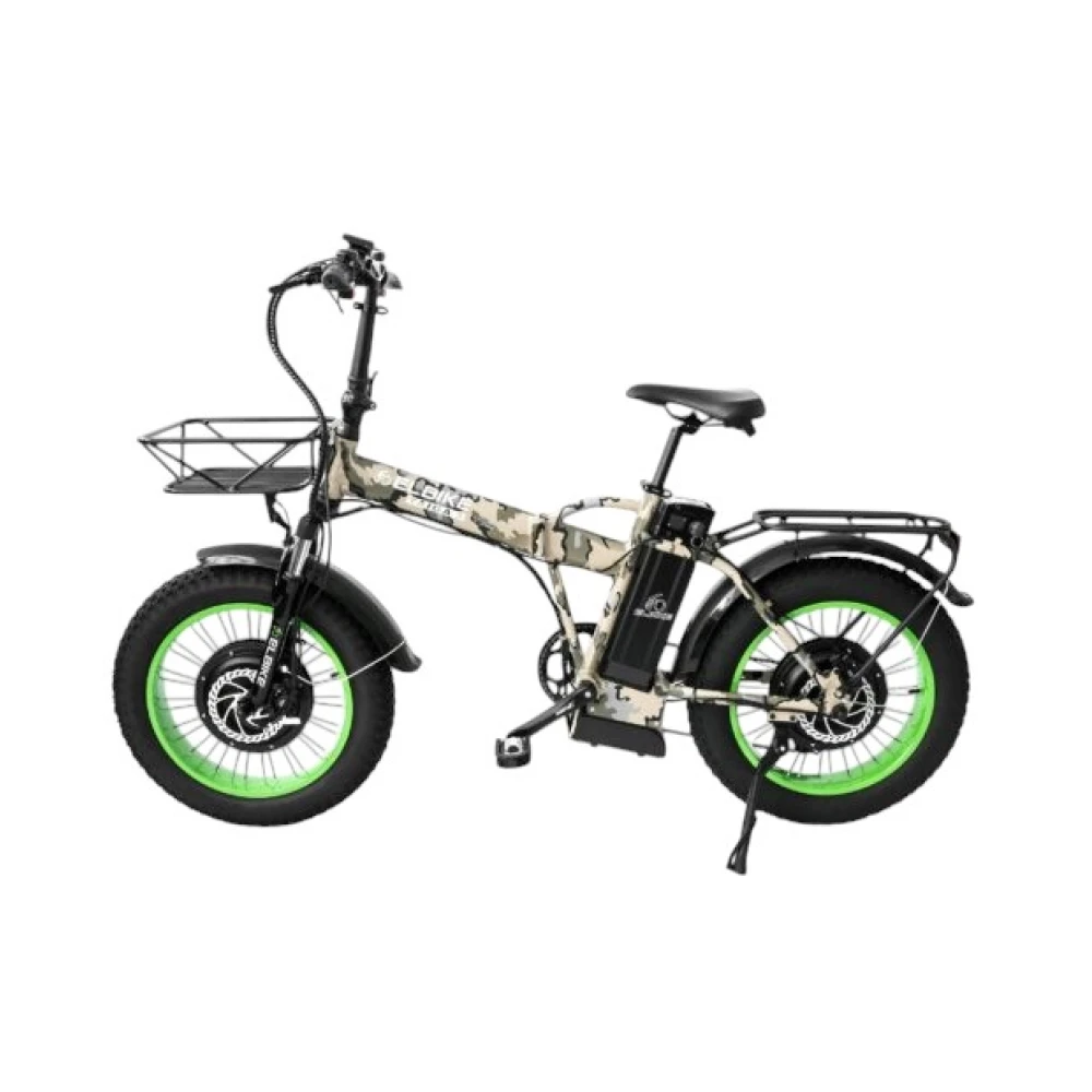 Электровелосипед Elbike Taiga 3 Twix Camouflage (Камуфляжный) — идеальный спутник для тех, кто ценит свободу передвижения и стиль. С его мощными моторами по 500 Вт каждый, вы сможете легко преодолевать любые препятствия, достигая скорости до 50 км/ч. Благодаря высококачественной батарее на 16 Ач, этот электровелосипед обеспечивает впечатляющий пробег: до 75 км без помощи педалей и до 135 км в смешанном режиме, что делает его отличным выбором для дальних поездок.С весом всего 28 кг и грузоподъемностью до 130 кг, Taiga 3 Twix Camouflage сочетает в себе легкость и прочность. Его колеса размером 20×4 дюйма и жесткая подвеска гарантируют отличную проходимость и комфорт на любых маршрутах. Мягкая вилка ZOOM и гидравлические тормоза как спереди, так и сзади обеспечивают надежное управление и безопасность. LCD-дисплей предоставляет всю необходимую информацию о скорости, пробеге и состоянии батареи, что делает поездку более комфортной и информативной. С 7 передачами вы всегда сможете выбрать оптимальный режим для любых условий. Время зарядки аккумулятора составляет всего 8 часов, что позволяет быстро подготовиться к новым приключениям. Камуфляжный цвет придает этому электровелосипеду уникальный и стильный вид, который привлечет внимание на любом маршруте. Elbike Taiga 3 Twix Camouflage — это не просто средство передвижения, это ваш верный компаньон в мире активного отдыха и приключений.
